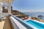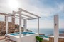 The great amenities of the suites – villas begin from the exterior with the private swimming-pool or jacuzzi and reach the interior space. The traditional cycladic architecture combined with modern decoration create perfect harmony and peace in the space. The guests are able to share the exterior space, the comfortable living-room with the couch-bed, the dining-room, the kitchen and the gorgeous view to the Aegean Sea, while they can enjoy the privacy the two spacious bedrooms with kingsize beds offer them.